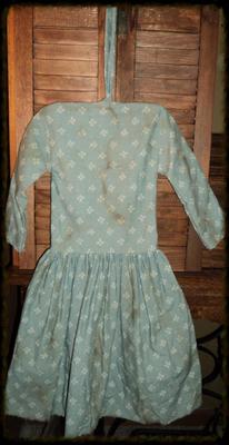 GRUNGY PRIMITIVE WALL~CUPBOARD SCHOOLHOUSE DOLL DRESS BLUE PATTERN ~FOLK ART~