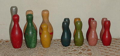 Title (ebay affiliate link): 14 Vintage Antique Wooden Mini Bowling Pins Old Original Paint Wood Lot #12