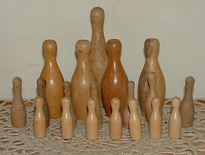 Title (ebay affiliate link): 18 Vintage Antique Wooden Miniature Toy Bowling Pins Old Wood Lot #13 NR