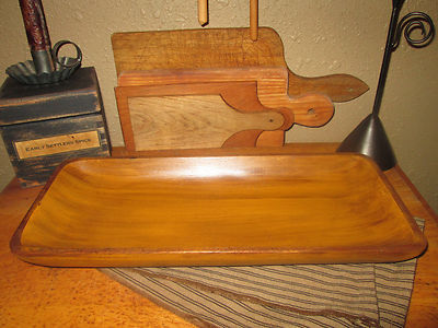 Title (ebay affiliate link): Primitive Country Farmhouse Wood Trencher Bowl Pantry Cupboard Antique Mustard