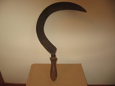 Title (ebay affiliate link): Vintage Sickle Blade Hand Sythe Wooden Handle Farm Tool Made in Austria