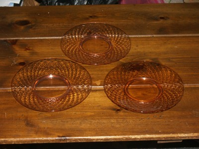 Pink diamond quilted luncheon plates (3) depression glass