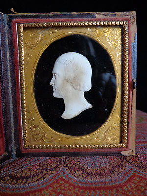 Antique Silhouette Plaster Portrait Chalk Case 19th Century
