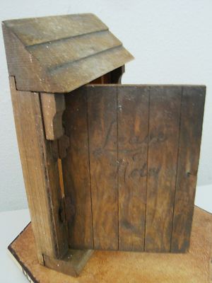 Title (ebay affiliate link): ANTIQUE All WOOD Carved 'Leave a Note' Outdoors Note Box - 1870s to 1900s