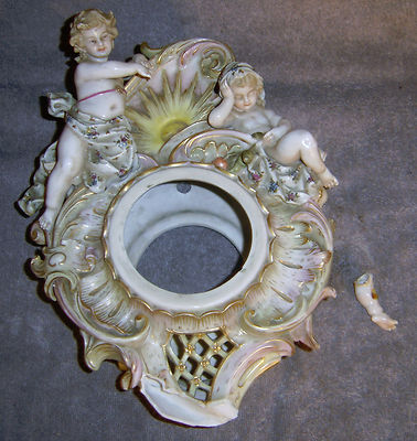 ANTIQUE 19C PROCELAIN CLOCK SHELL SHERUBS & SUNRISE NEEDS FIXING