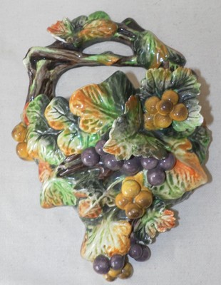 Vintage MAJOLICA Wall Pocket VASE Colorful GRAPES!