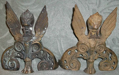 Title (ebay affiliate link): Pair ANTIQUE heavy metal brass? UNIQUE winged gothic type creatures from ...