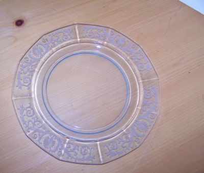 Title (ebay affiliate link): Depression glass plate Victorian etching light blue