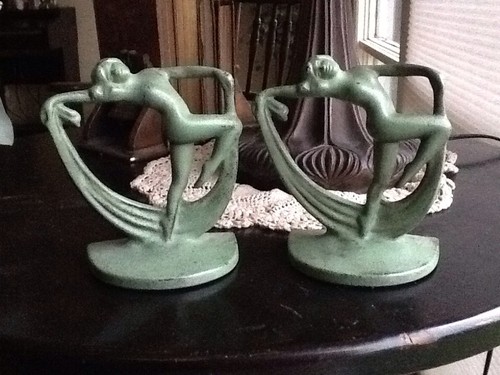 Art Deco Bookends Nude Dancers with Scarves Vintage Cast iron