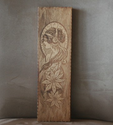 Vintage Pyrography Wood Burned Box Art Noveau Lady and Poinsettias
