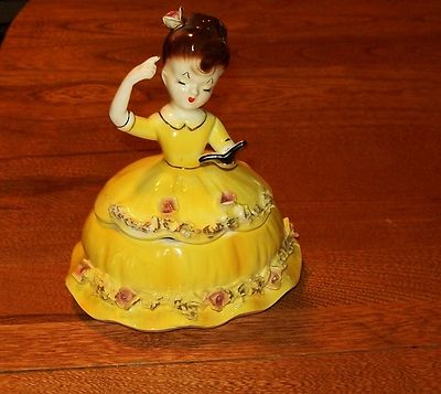 Title (ebay affiliate link): Vintage Arnart Creation Japan Girl Trinket Dish-Yellow Flowing Gown-Gorgeous!