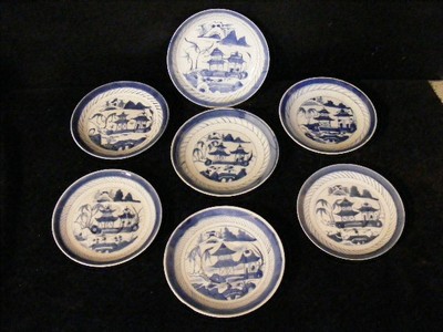 LOT 7 ASSORTED ANTIQUE CHINESE CANTON PLATES & SAUCERS