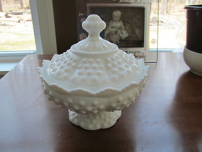 Title (ebay affiliate link): Fenton white milk glass HOBNAIL Footed Candle Holder & Cover