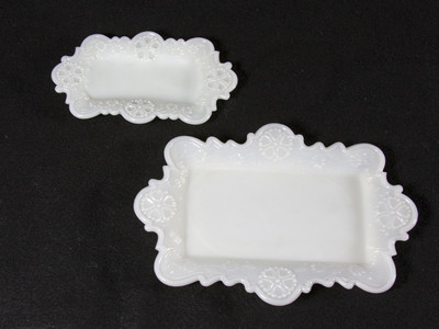 Pair of Antque EAPG Milk Glass Vanity, Dresser Trays