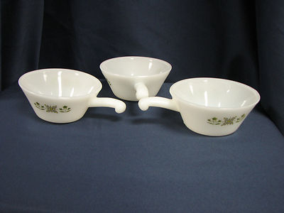 3 FIRE-KING chili cereal SOUP MUG bowl cup Anchor Hocking OPAQUE MILK GLASS