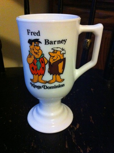 Hanna-Barbera Flintstones Fred Barney Kings Dominion Milk Glass?Glass Mug