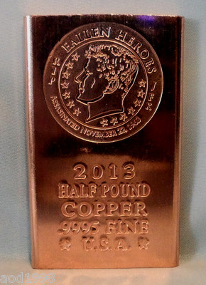 Title (ebay affiliate link): NEW Fallen Heroes John F. Kennedy Half Pound .9995 Copper Bullion Bar FREE Ship