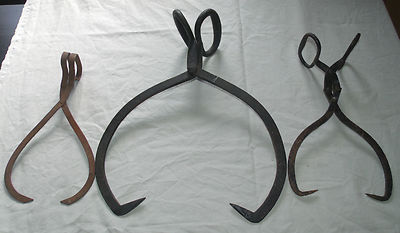 Title (ebay affiliate link): Lot of 3 old Ice block tongs Ice Block or Log carrying tool cast iron 3 sizes