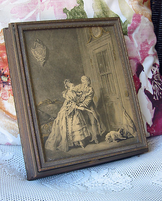 19thC COTTAGE CHIC WOODEN VANITY JEWELRY BOX w/MIRROR & VICTORIAN ART PRINT
