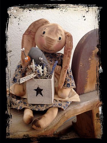 Title (ebay affiliate link): Primitive girl bunny rabbit raggedy doll, Prim Box With Flowers And Crow