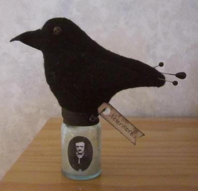 Title (ebay affiliate link): PRIMITIVE WOOL CROW BIRD EDGAR ALLEN POE MAKE DO PIN CUSHION SEWING PFATT EHAG