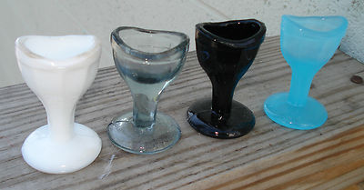 Title (ebay affiliate link): 4 PC. GLASS EYE CUP SET - AZURE, BLACK SLAG, WHITE MILK, WILLOW BLUE