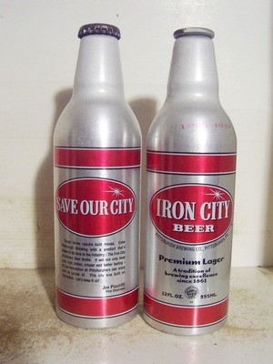 Title (ebay affiliate link): QTY = [2] DIFFERENT IRON CITY ALUMINUM BEER BOTTLES -""SAVE OUR CITY""-