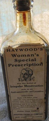 Title (ebay affiliate link): c1919 Antique/Vintage Apothecary Haywood Medicine Bottle w original contents