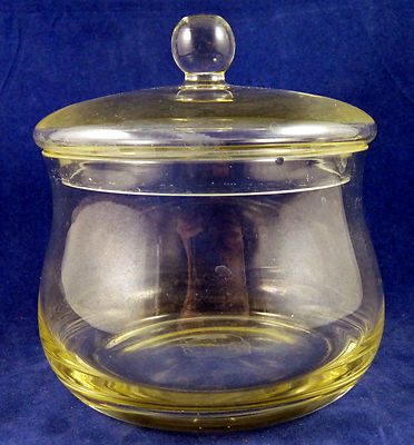 VINTAGE APOTHECARY GLASS JAR & LID CANDY POWDER DRESSER JAR NICE
