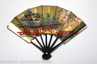 Title (ebay affiliate link): VINTAGE 1960s MINIATURE JAPANESE HAND PAINTED FOIL PAPER FAN - DOLL ACCESSORY