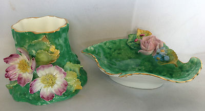 Rare Antique Royal Worcester Posy Pot/Holder Tree Stump- Leaf Pattern Pin Tray