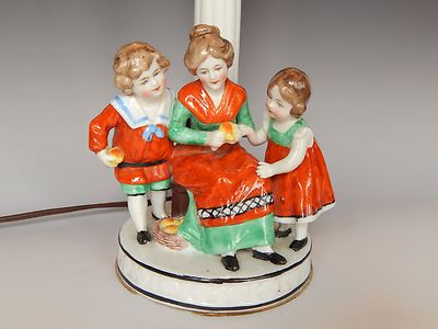 Antique German Porcelain Figural Boudoir Lamp Lady Mother Child Figurine dresden