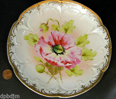 Title (ebay affiliate link): 1900's RW Bavaria Hand Painted Poppy ~ Gold Stenciled edge 7.5" plate