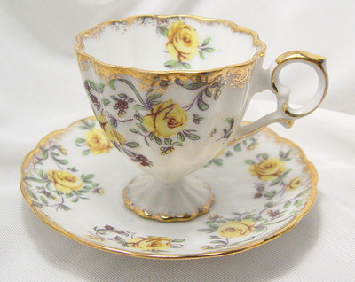 Vintage China Yellow Roses Scalloped Tea Cup & Saucer