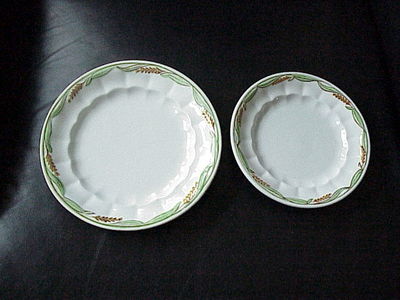 WHITE IRONSTONE CERES WITH GREEN/ORANGE DEC. 2 PLATES