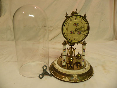 Title (ebay affiliate link): ANTIQUE GERMAN HALL CRAFT COMPANY YEAR RUNNING CLOCK UNDER GLASS SOME RUNS FINE