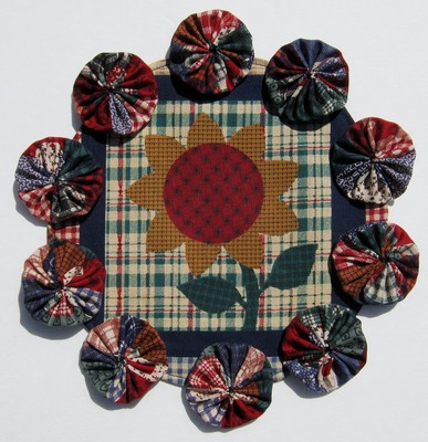 Title (ebay affiliate link): Patchwork Sunflower Quilt Look Country Gingham YoYo Candle Mat Doily Centerpiece