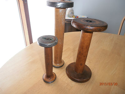 Title (ebay affiliate link): Lot of 3, 10" 8" 6" Antique Vintage Textile Mill Wood Bobbins Spools Sew Large