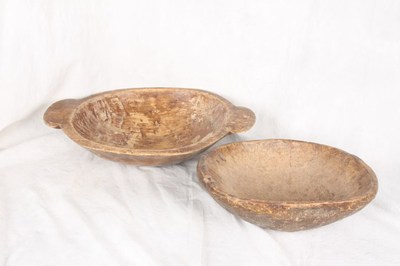L11 LOT OF 2 PRIMITIVE HAND HEWN DOUGH BOWL AND TRENCHER