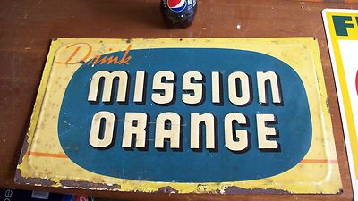 Title (ebay affiliate link): OLD TIN TACKER SODA MISSION ORANGE SIGN 1950 S ? MACHINE STILL STORE DISPLAY