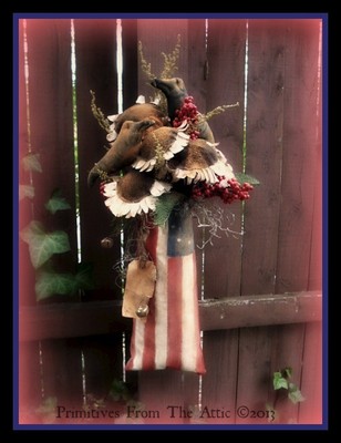 Title (ebay affiliate link): ExTReMeLy PriMiTiVe OLDE DAISIES and CROWS in an AMERICANA FLAG SaCK ~ 18"