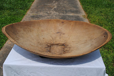 Title (ebay affiliate link): Unusual Antique Trencher Dough Bowl unusual square base bottom w/ old nails