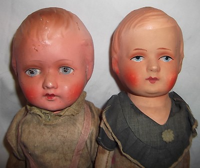 Title (ebay affiliate link): ANTIQUE GERMAN Papier Paper Mache & Straw Stuffed Cloth VINTAGE BOY & GIRL DOLLS