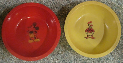 Title (ebay affiliate link): Mickey Mouse Donald Duck early premium cereal bowls - Beetleware (1930s)