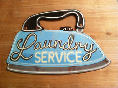 Title (ebay affiliate link): LARGE 19" IRON VINTAGE OLD LOOKING 1950 1960' LAUNDRY SERVICE METAL SIGN.