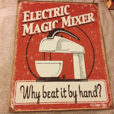 Title (ebay affiliate link): Electric Magic Mixer Vintage Style Tin Sign Retro Ad Wall Decor 16" kitchen deco