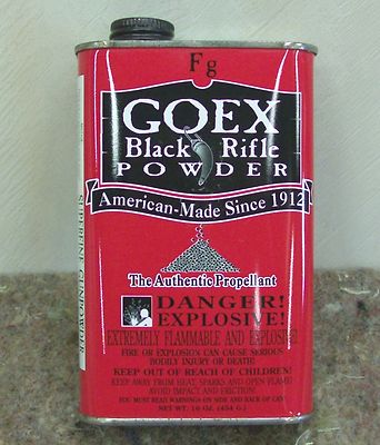 Title (ebay affiliate link): Empty GOEX Black Rifle Powder Tin Can Muzzle loader shot gun art Gunpowder bank