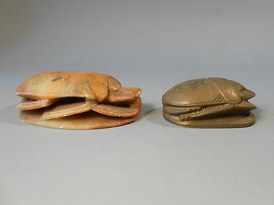 Title (ebay affiliate link): Lot 2 Egyptian STYLE Scarabs w/ Hieroglyphics in Brass & Soapstone ca. 20th c.