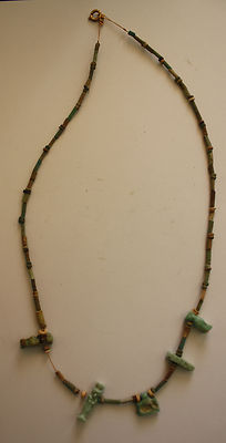 EGYPTIAN FAIENCE BEAD AND AMULET NECKLACE