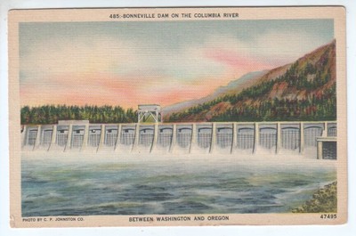 Title (ebay affiliate link): OR OREGON, BONNEVILLE DAM ON THE COLUMBIA RIVER, OLD POSTCARD C1938